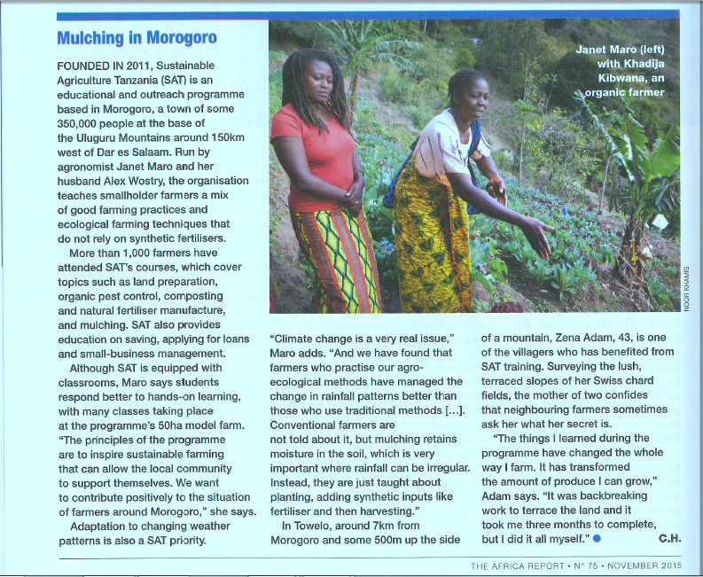In der Zeitschrift The African Report wurde in der November-Ausgabe ein Artikel über die Organisation Nachhaltige Landwirtschaft in Tansania (SAT) veröffentlicht.
